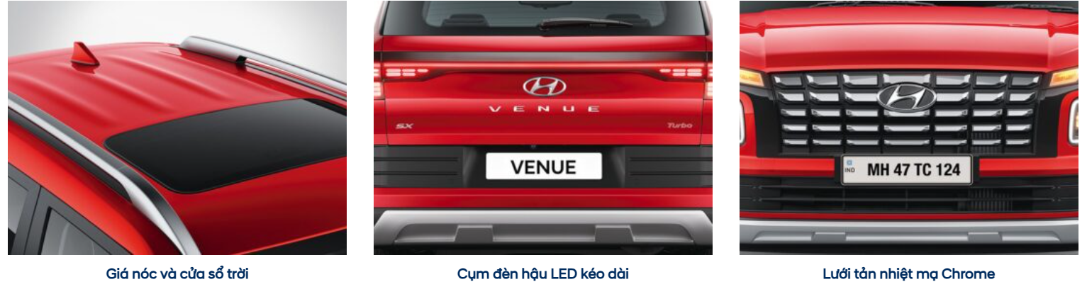 Từ lưới tản nhiệt mạ crôm tối màu cho đến dải đèn hậu LED kết nối, bạn biết rằng mình sẽ nổi bật giữa đám đông khi hòa mình vào cuộc sống với Hyundai Venue.